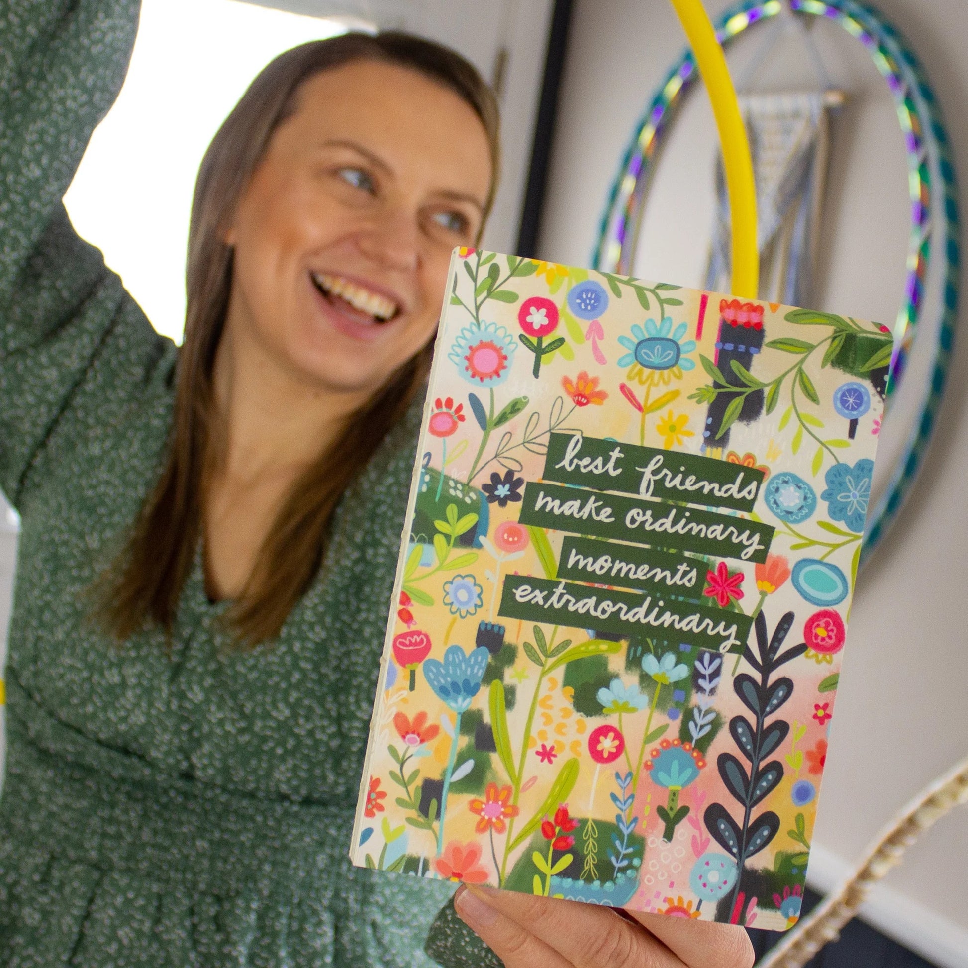 This one has the journal addict written all over it! This inspirational and functional everyday accessory is the perfect reminder that friends make life worthwhile! The vibrant hand illustrated design adds an adorable pop of color to your bedside table, home office - or even dorm! Record your favorite memories with your best friends in this little bundle of happiness. GREAT for vacations! Gift idea!
