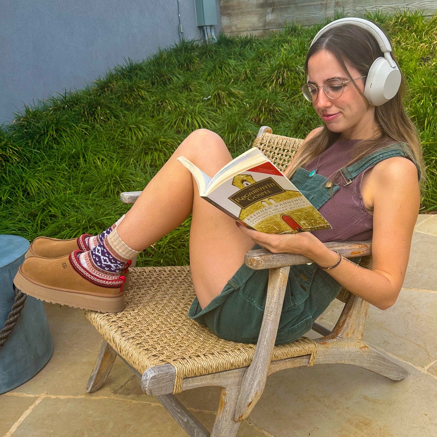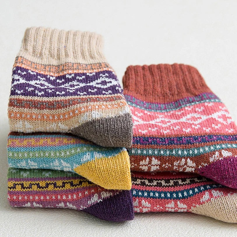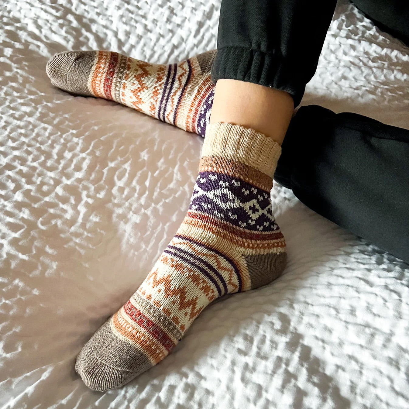 Meet the warmest socks of the season! With a touch of retro, these colorful statement pieces peek adorably out of boots. Super cozy for the cabin!