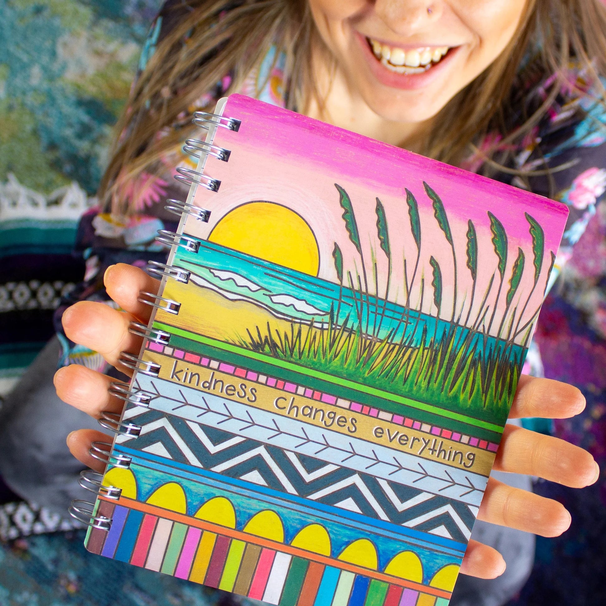 This coastal inspired and functional everyday accessory is the perfect reminder to show love to others during your travels! The vibrant hand illustrated design adds an adorable pop of color to your RV, hotel - or beach bag! Record your adventures, memories, and travel notes in this little bundle of happiness, perfect for gifting.
