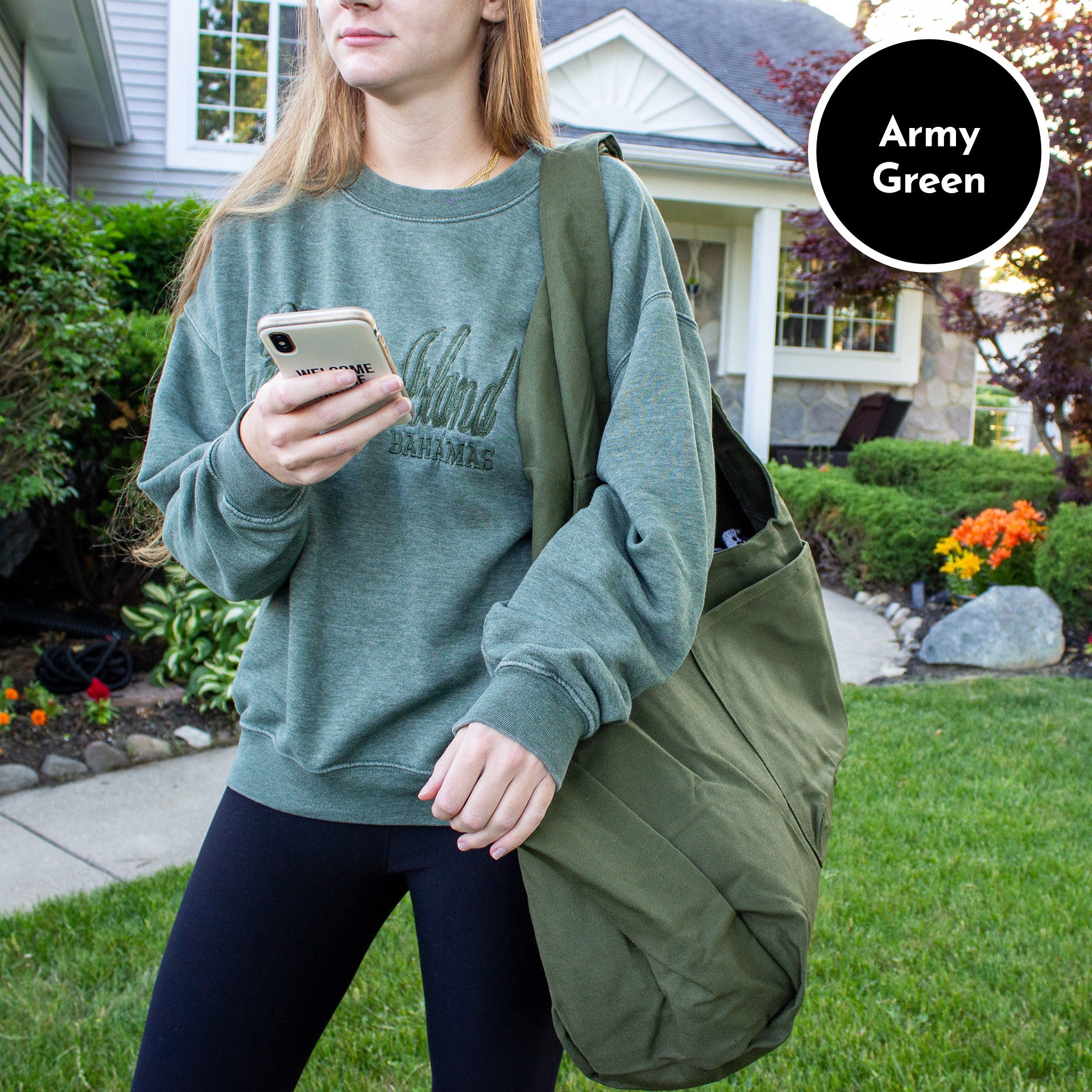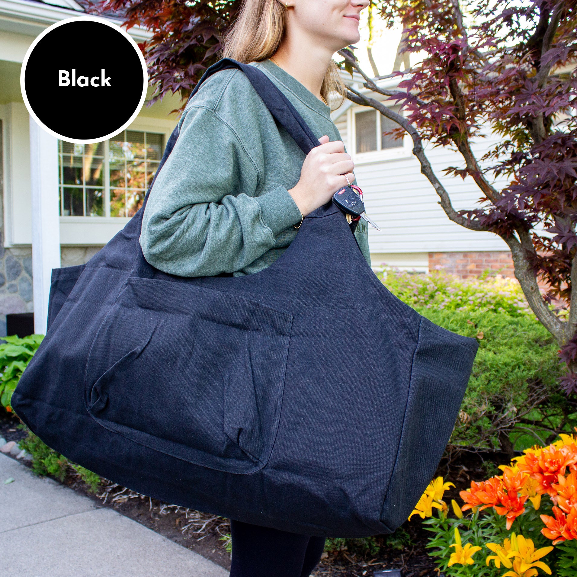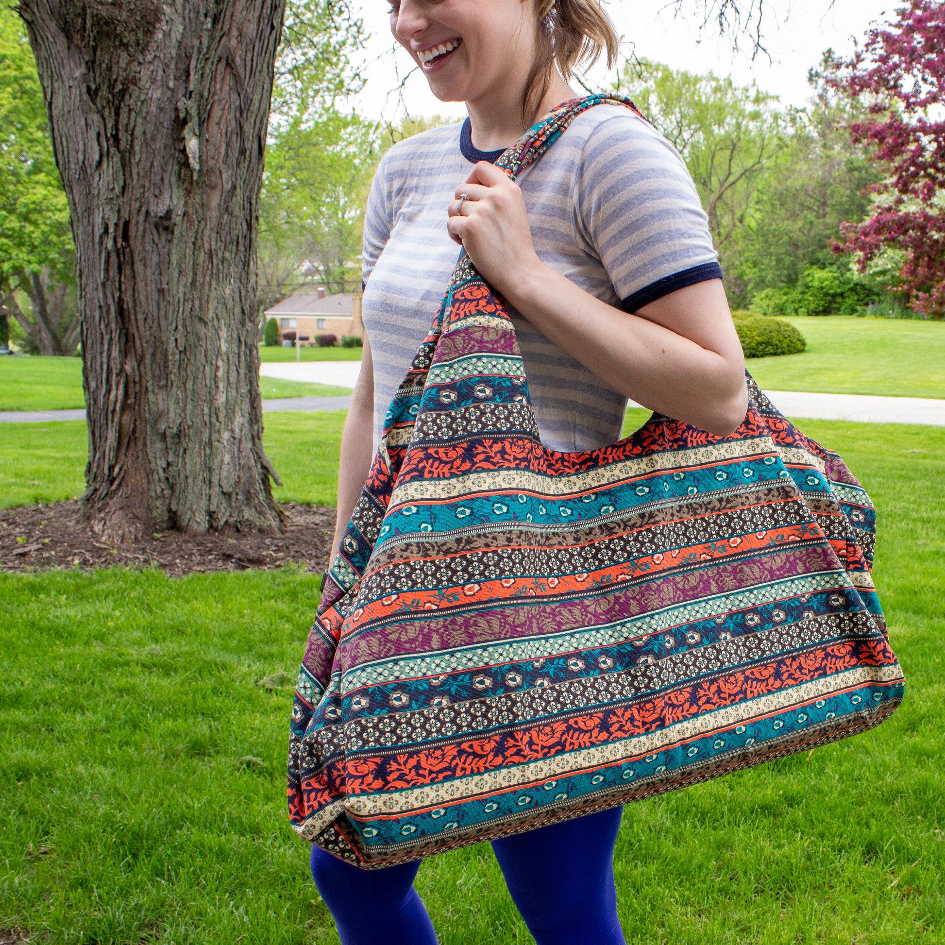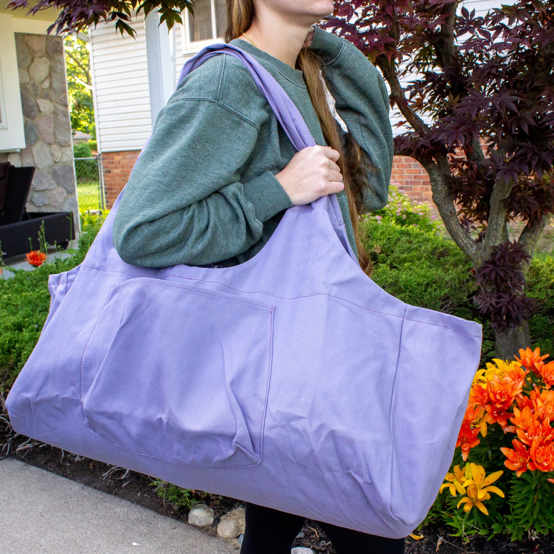 This is the perfect roomy yoga bag. Plenty of room to carry any size yoga mat. Previous yoga bag was small and it was difficult to fit my mat into the bag. Sling bag makes it so easy. Plenty of room for a water bottle too. Easy to carry bag over my shoulder.