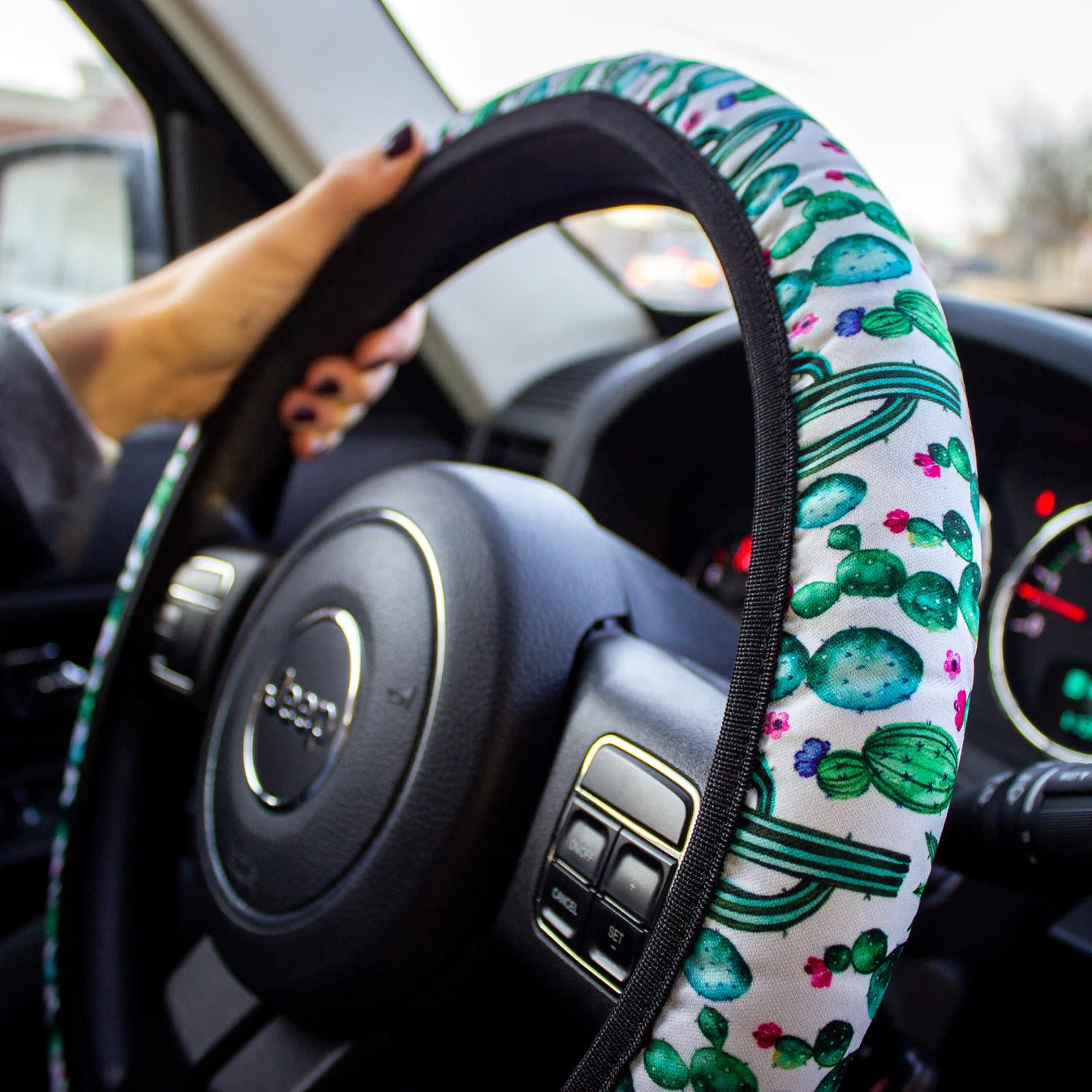 "I live in Arizona and this time of the year my steering wheel is so hot that I can barely touch it when I get in my car. This cover is so good! I can touch my steering wheel right away and it is so cute!"