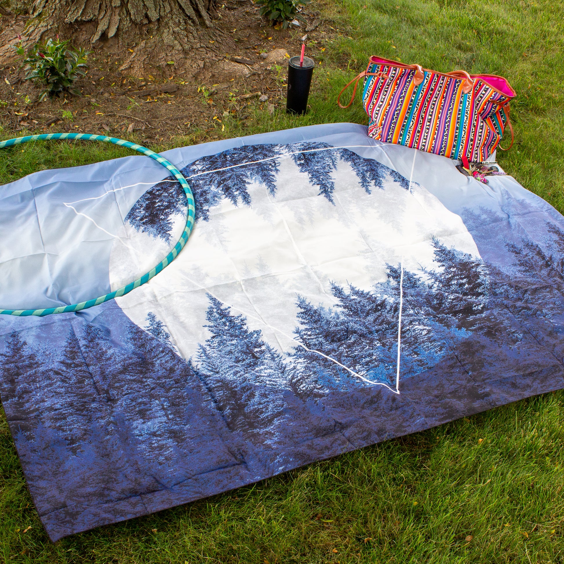 Be mesmerized by a tribal depiction of the forest in slate blues. You'll love the faint geometric accent and pseudo moonlight!