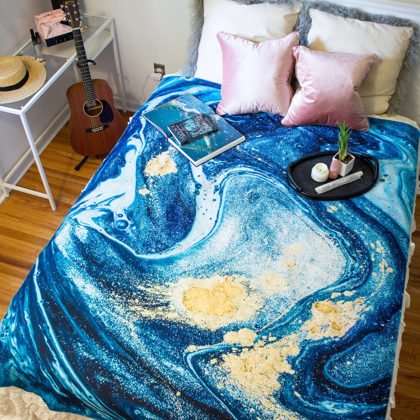 Choose your color and feel the desert heat with a combination of rock and crystal! This striking geode tapestry resembles its real counterpart, complete with shimmer accents and volcanic bubbles.