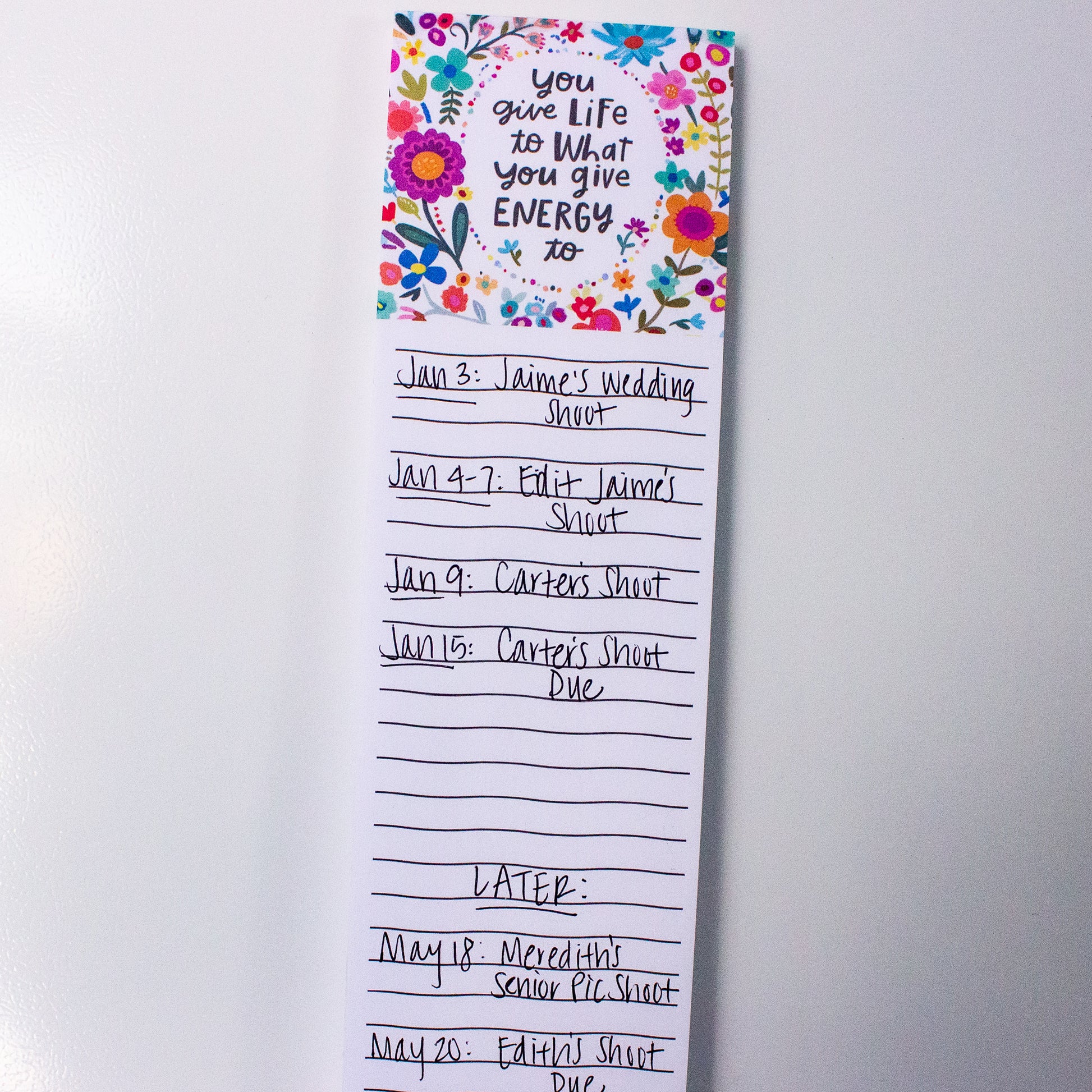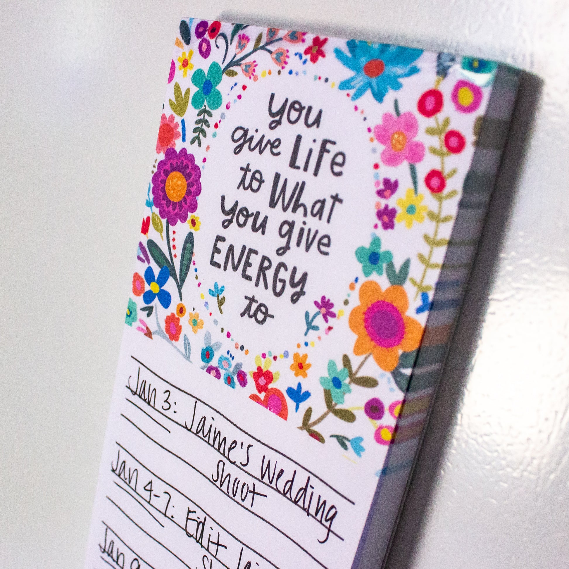 Finally, list making can actually be fun! Note down your goals, adventure checklist, grocery essentials, or dates to remember! This makes an adorable floral sentiment for any magnetic surface. P.S. Looks SO CUTE on a dorm fridge! Pair it with the matching Give Energy Journal for a perfect gift!